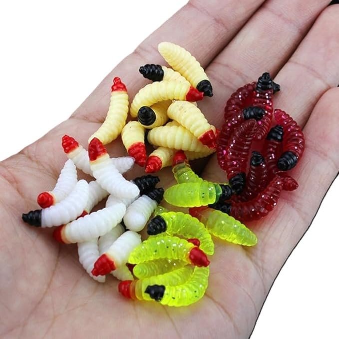 Futaba Soft Silicone Maggot Worm, Artificial Bread Worm Fishing Lures – Pack of 125