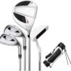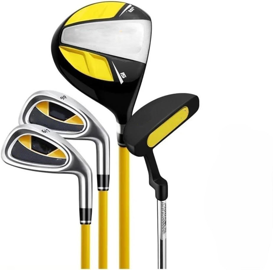 Complete Golf Club Sets – The junior golf club set includes 1# woods, 7# and S# irons, putter and golf stand bag with rain hood. With four different clubs,youth can handle multiple hitting scenarios, resulting in an authentic sports experience. Enhanced 360CC Driver Design – With a wide hitting surface, the 1-wood golf club offers a higher strike rate and easier control over ball distance. Forgiving Iron Technology – Featuring a durable construction, the club offers a forgiving face that enhances precision and accuracy. Its design ensures more accurate shots, making it a reliable choice for golfers. Putter with Sighting Line – The putter’s weight distribution and design promote a smooth stroke and precise control. With easy easy alignment aid for accurate putts, it can help players refine their putting skills and enhance their overall game. Ultra-lightweight Golf Clubs – The irons and woods of our kids complete golf clubs are made of graphite.Youth golf clubs up to 25% lighter than adult clubs — Graphite lite shafts engineered for more flexibility and junior swing speeds.This toddler golf set is the best choice! ‎95.88 x 28.57 x 20.32 cm; 3.54 kg .
