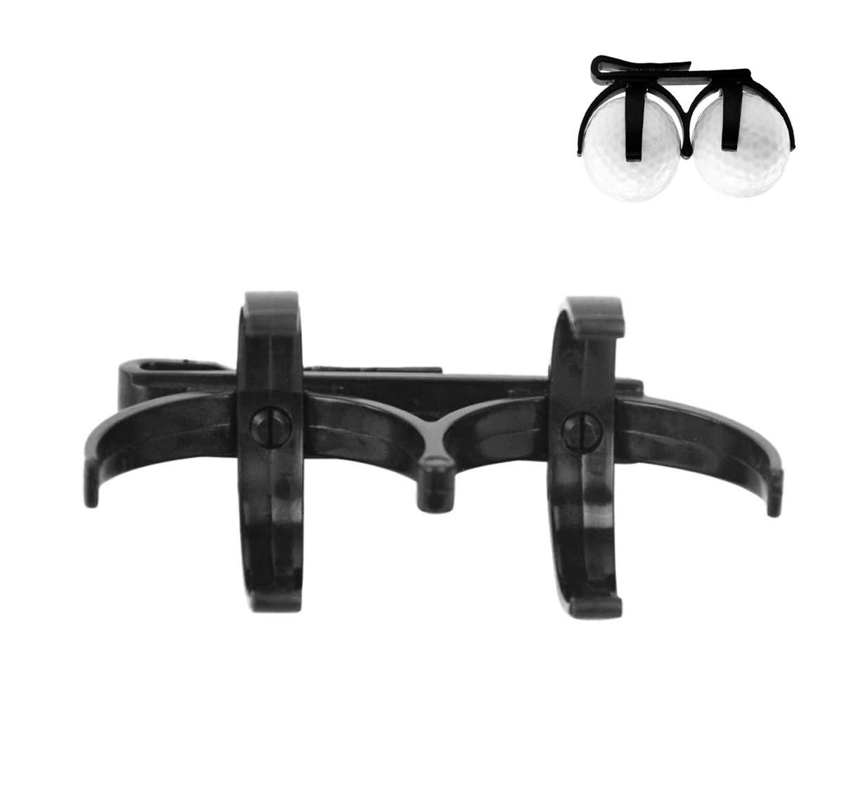 | Features: Hang it on your belt or golf bag. Easy to use, can hold two golf balls in stable. Rotate 90 digress, can hold on 2 golf balls, clip with ease to your belt and golf bag. Very durable golf holder clip suitable for practice, easy operation also helps you to play and enjoy your golf game. Specifications: Product name: golf ball clip. Material: plastic, Color: black, Size: approx. 8 x 4.2 x 1cm/3.15 x 1.65 x 0.39in, Weight: 15g. |