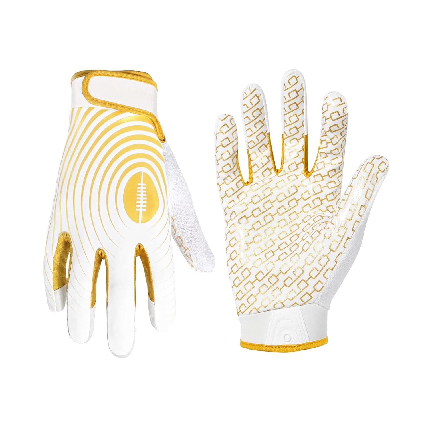 - Amazing grip football gloves, keep the ball in hand : One piece tacky silicone palm design for an excellent grip to helps kids catch and hold on to footballs, durable and comfortable. These youth football gloves are suitable for teenagers, please refer to the scale table when purchasing!