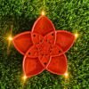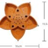 • This unique product features five 5 warm red ambiance LED lights positioned in petal-like arrangement, each facing a different direction, creating a beautiful flower like design. At the center of the Diya, there’s a multi-color LED light embedded within the Diya, resembling the flower’s stem from where it blooms. When the Diya switch is turned on,
