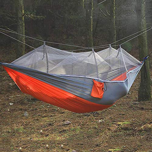 - 【Hammock with Mosquito Net】With the mosquito net, the camping hammock could keep you well away from the mosquitoes, bugs, flies or other wild insects outside to protect you and your children. What’s more it could also act as a sunshade in hot weather. To breath the fresh air without bugs and hot sunlight, it will bring you an excellent outdoor experience.